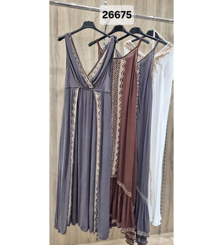 VESTIDO LARGO T/FINO BORDADO NATURAL 26675